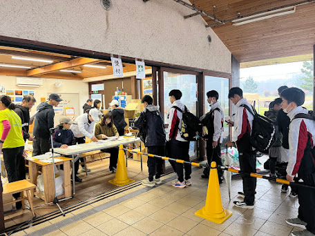 駅伝は、23チーム(約110人)が競い合い、地元の市役所、郵便局、やぐら青年団チーム、⼩・中学校の先生や警察、⾃衛隊の方々らが懸命に走りました。