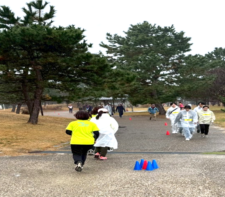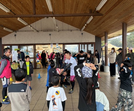 昨年の12月21日(日)、せんなん里海公園でクラブが主催する大会を開きました。総人数は約600名にもなり、小さい子供さんから中高齢者までの幅広い年齢層の人々が集まりました。さらに、太極拳、和太鼓、よさこい、ブレイクダンス、ラグビー教室、長縄跳びなどのイベントもあり活気ある大会!になりました。