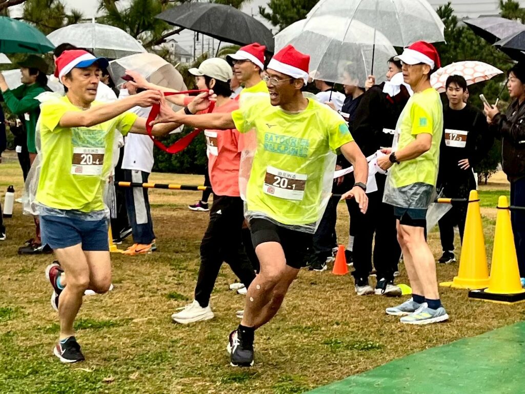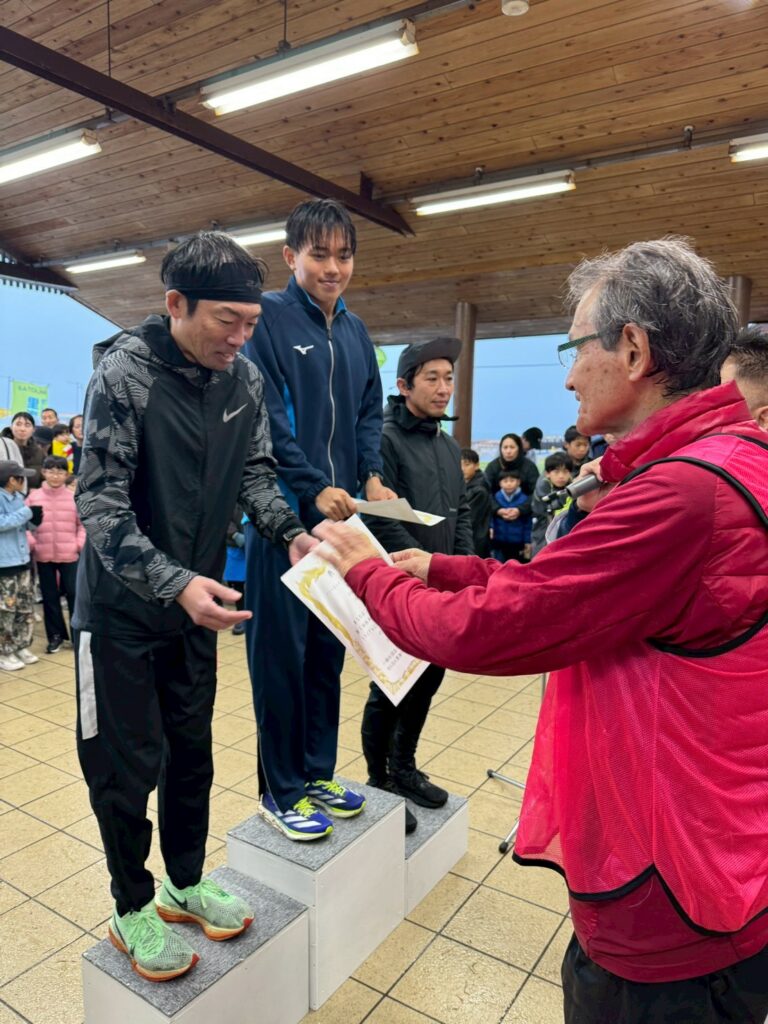 駅伝は、23チーム(約110人)が競い合い、地元の市役所、郵便局、やぐら青年団チーム、⼩・中学校の先生や警察、⾃衛隊の方々らが懸命に走りました。